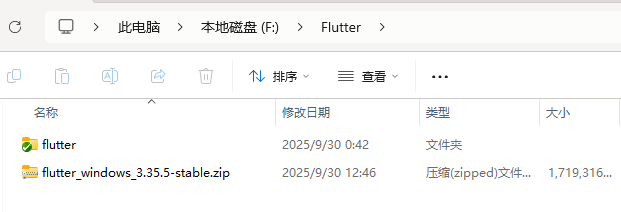 解压时请选择解压到当前文件夹,最终效为:F:\\Flutter\flutter,如下图: