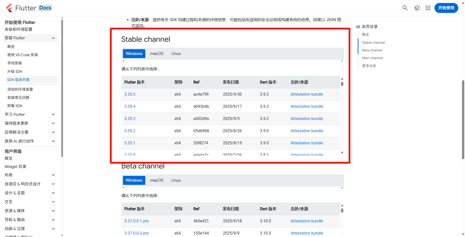 打开链接后,下滑,找到Stable channel章节(如下图),Stable channel是稳定版本列表。