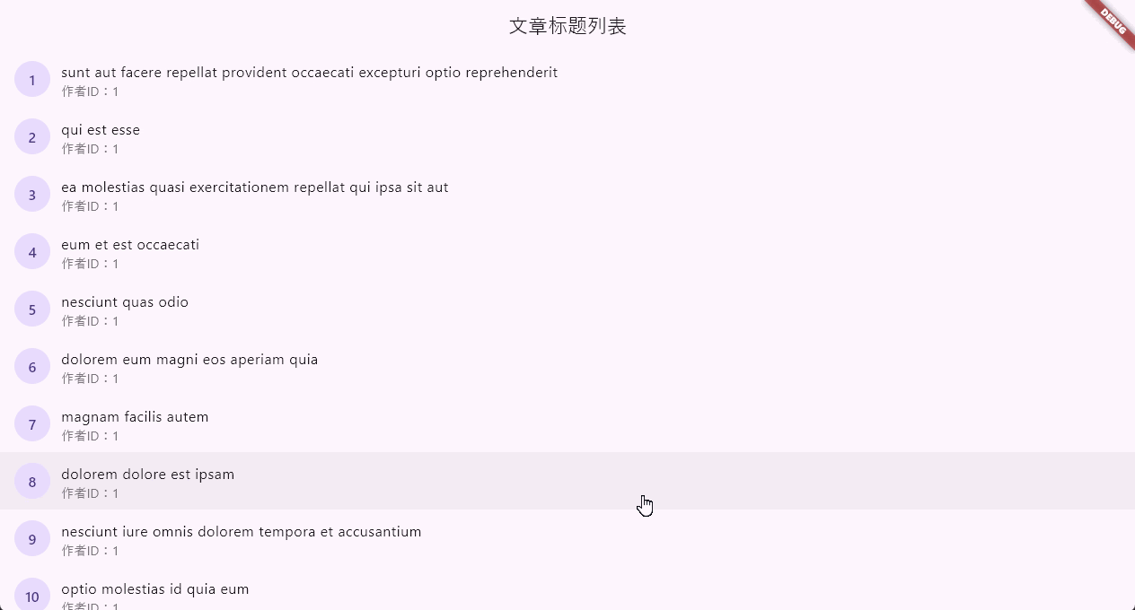- 使用Dio调用https://jsonplaceholder.typicode.com/posts 获取文章数据。
